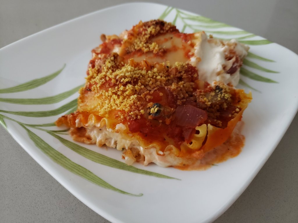 I have been wanting to post my lasagna recipe for some time, but just haven’t. Oops. Right now I am making lasagna more often and can get it in the oven in about 30 minutes. It’s so yummers, but less heavy than a cow cheese filled lasagna.