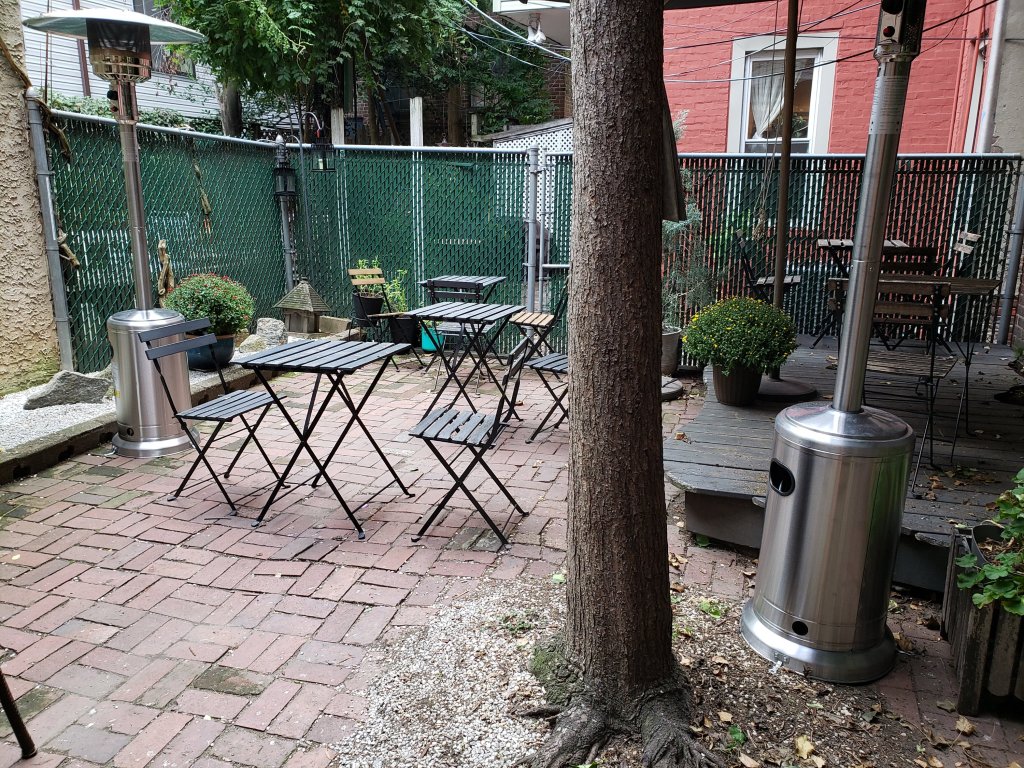 All meals are eaten outdoors right now due to COVID-19 and sidewalk tables also invite folks to sit and relax while enjoying delicious food.