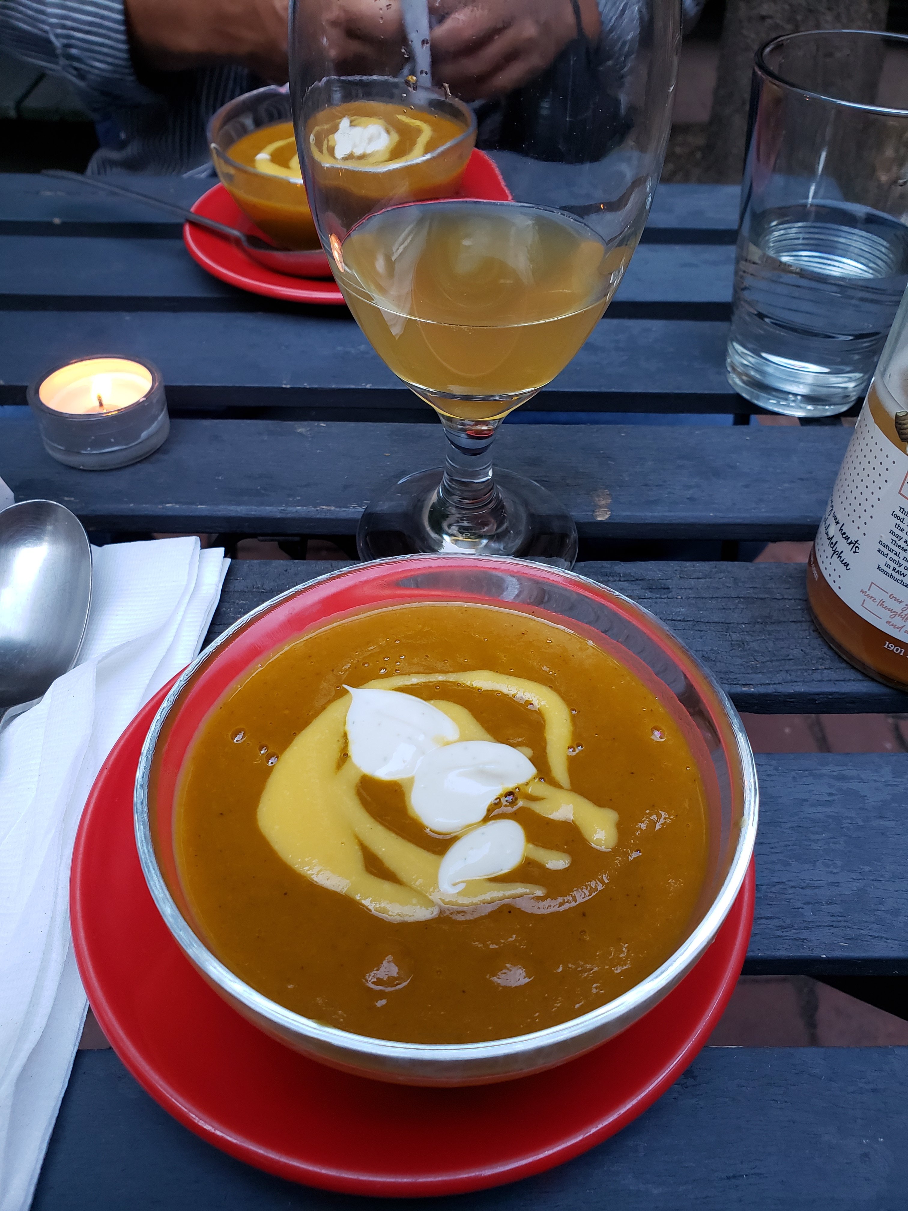 In addition to a delicious daily menu, there are special meals during various occasions like Valentine’s Day or during Philly Vegan Restaurant Week. Right now there are special meals on Saturday nights. Last Saturday I enjoyed a Harvest Moon Dinner of squash soup, salad, pesto pasta, and carrot cupcake with soft serve ice cream.