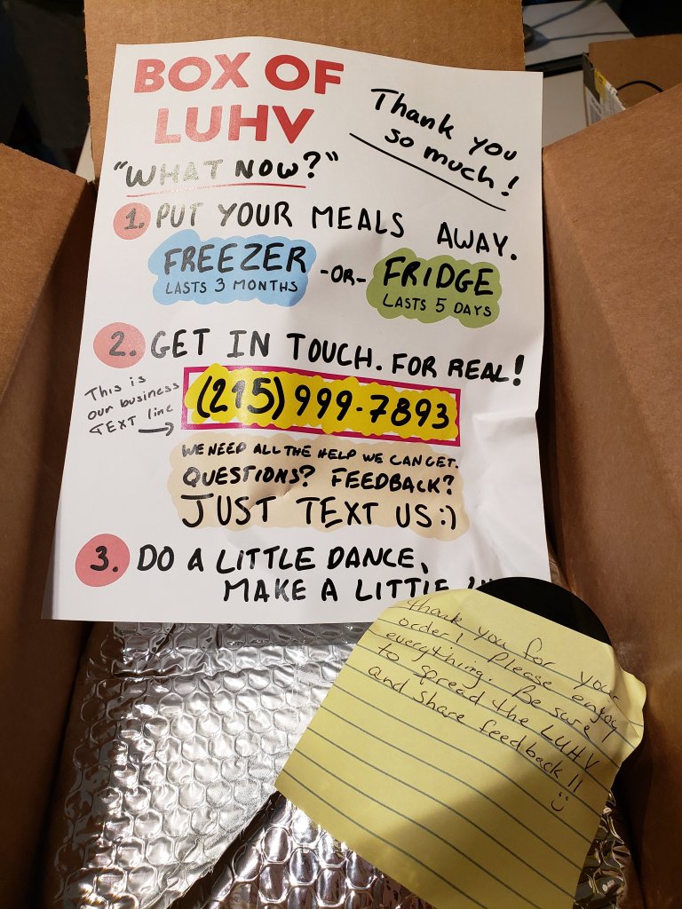 Hubby was even more excited than I and picked out four dishes. A week later I got a text that our Box of LUHV was delivered.