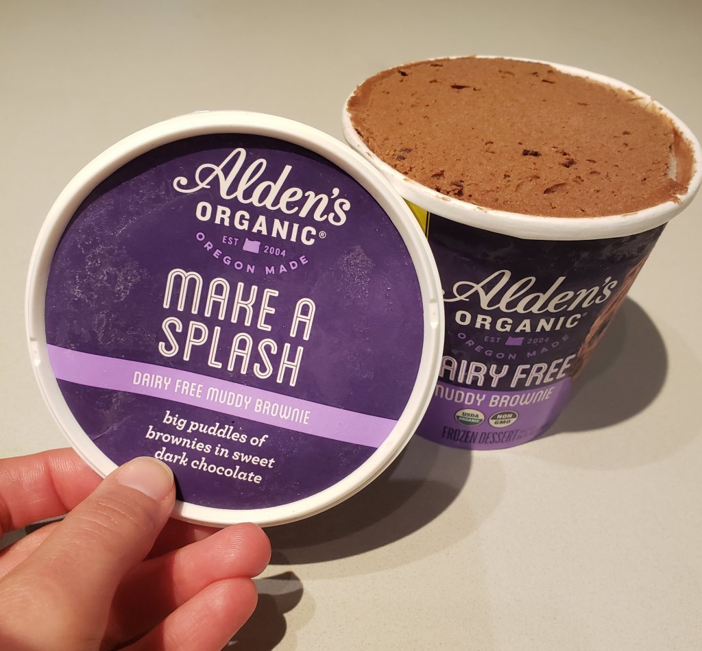 To kick off the warmer weather, I tried a new to me ice cream, Alden’s Organic Muddy Brownie. I was tempted by chocolate and bits of brownie, but was overall disappointed. The chocolate flavor was a bit strange to me, like an alternative sweetener was used. Then the bits of brownie had an unusual texture and taste that I did not like. I recommend skipping this one.