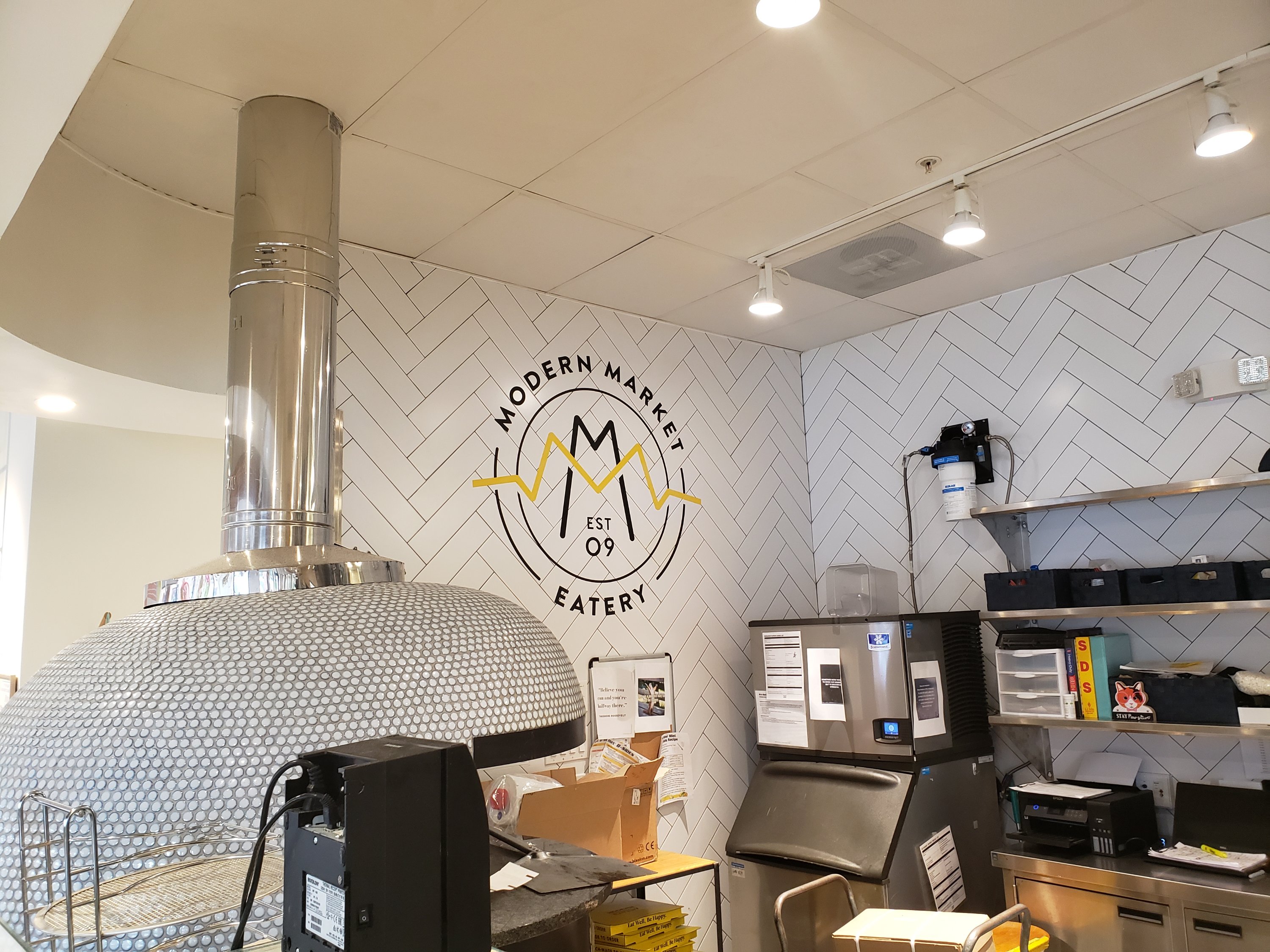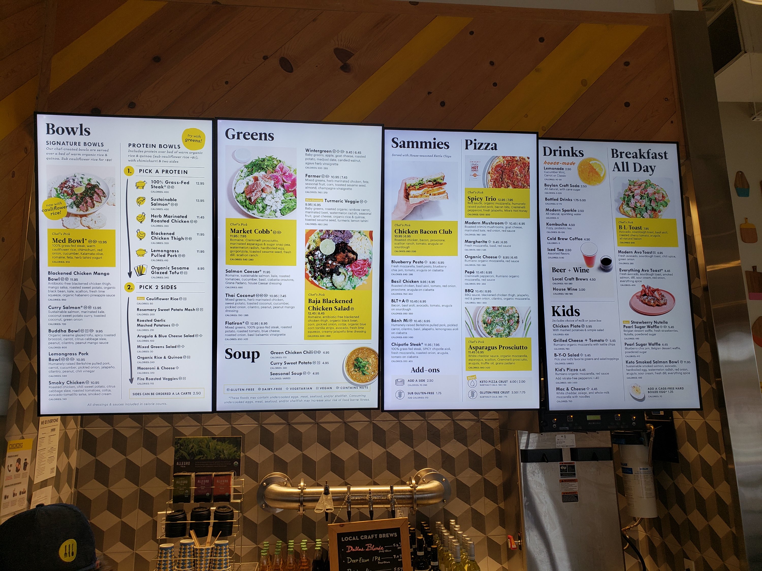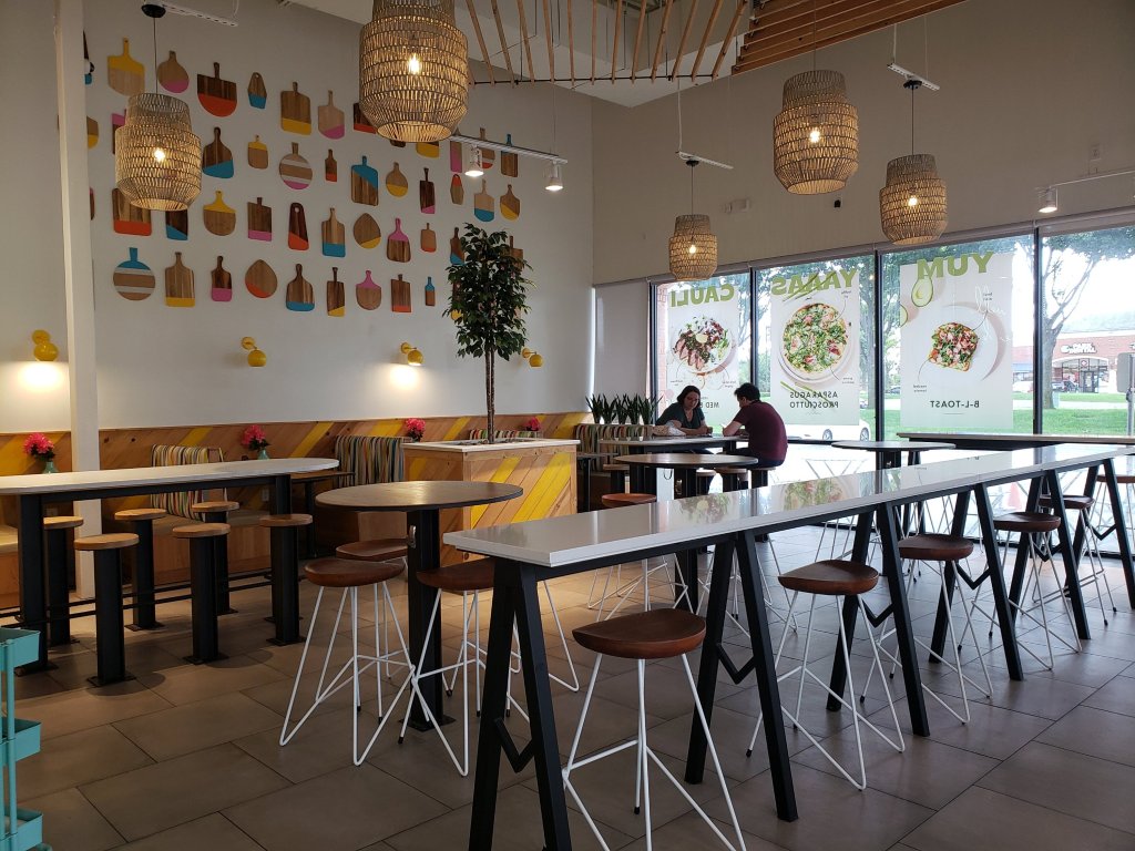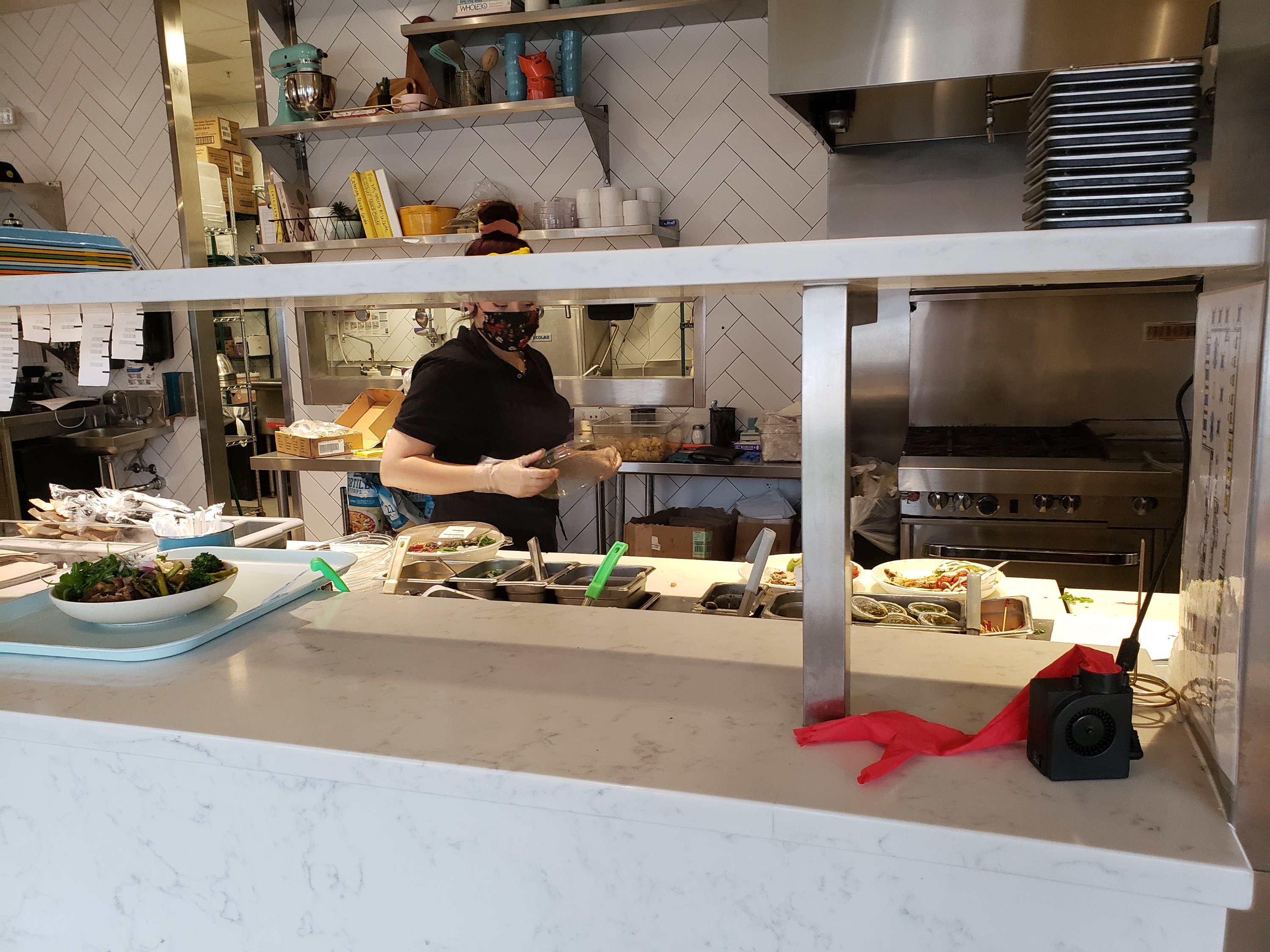The space was cute. Everyone orders at the counter and that takes a while. The person at the counter was not especially menu knowledgeable, but maybe he was new. He didn’t know they were out of broccoli and had to ask me later what I wanted instead. I liked the open kitchen.