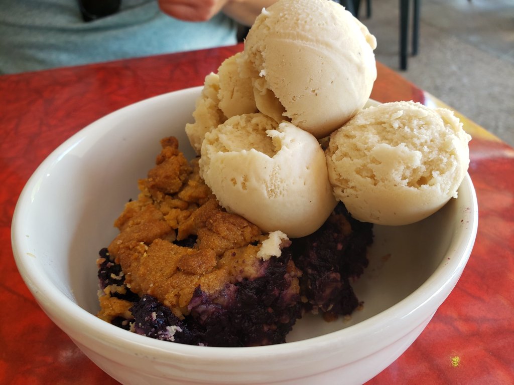 We both enjoyed everything. Their tofu scramble is interestingly dry, so we took advantage of the salsa. Hubby wasn’t full enough and ordered the Lavender Blueberry Pie with vegan ice cream for dessert. Also delicious.