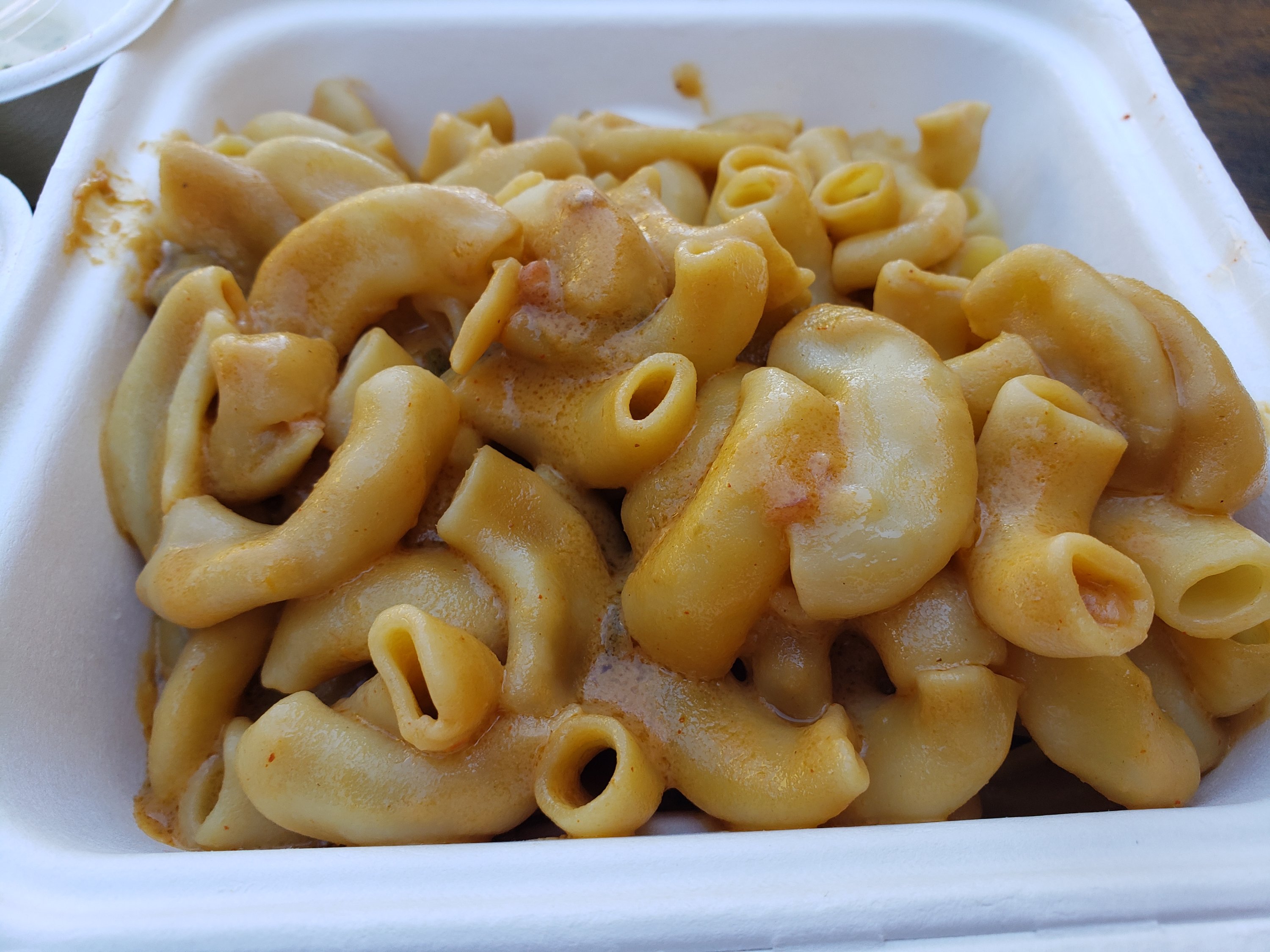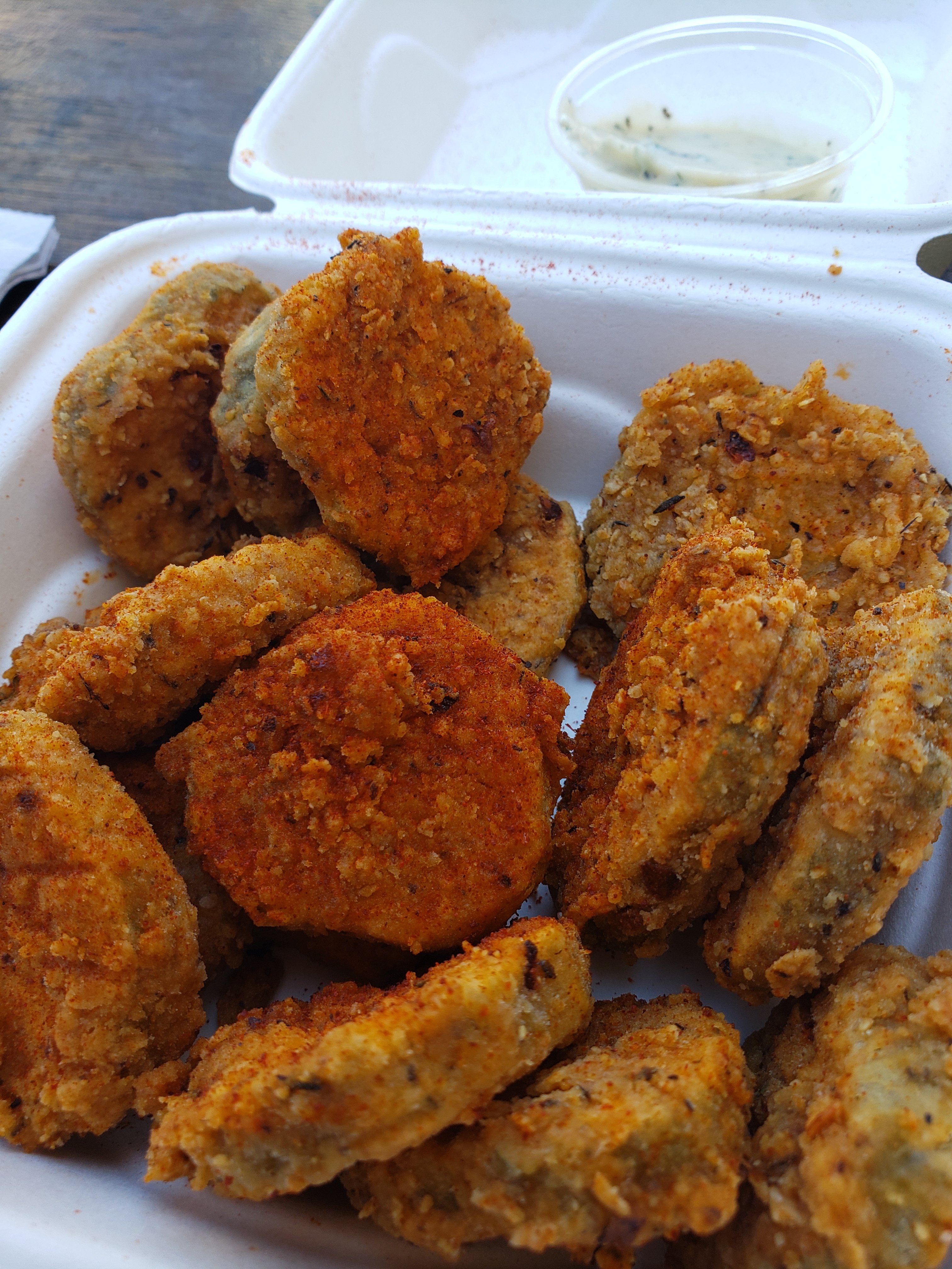 We picked a picnic table outside and dug in. We enjoyed the food, but Hubby got sick later. Oops.