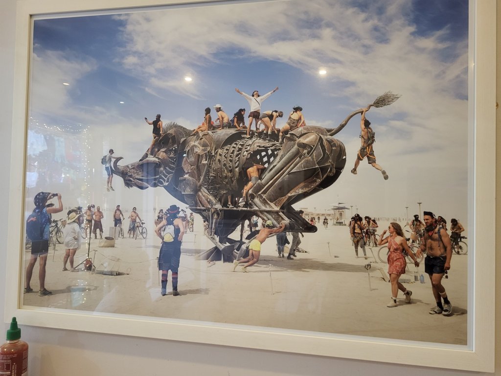 While we waited for our food, we enjoyed looking at photos of exhibits from Burning Man.