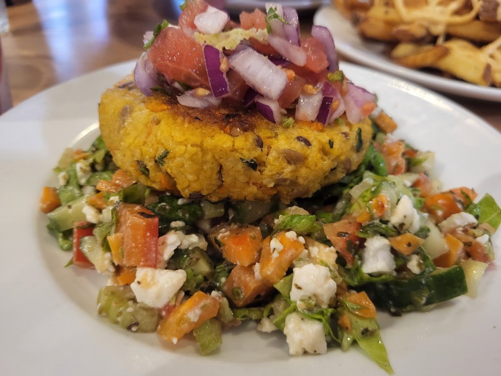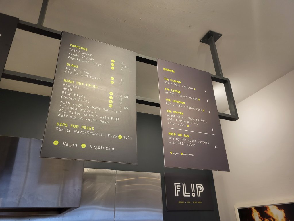 Flip does a nice job of labeling all the things to know which are vegan versus vegetarian. And gluten-free is not a challenge when burgers can be ordered over salad.