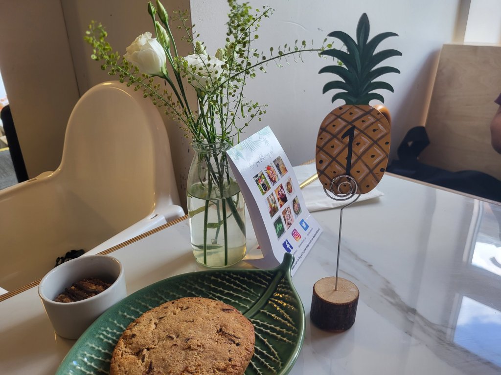 Both treats were quickly plated and handed with a pineapple shaped number. These I took to a table to wait for the bowls.