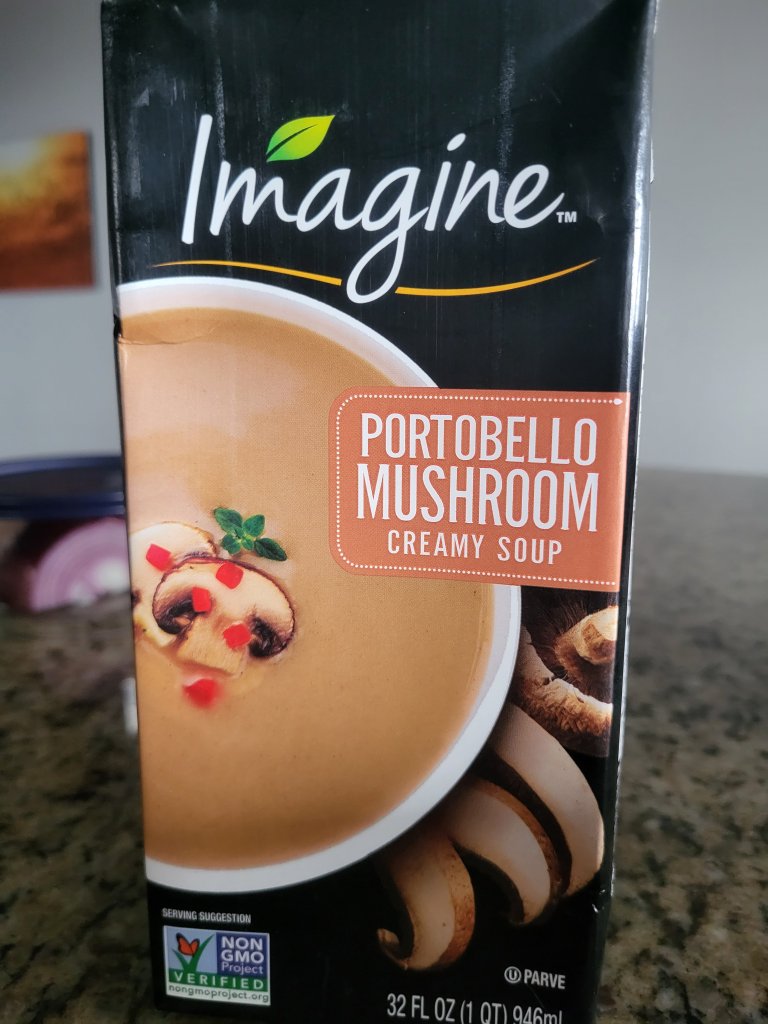 • 2 cups mushroom soup. I always have a box of Imagine Portobello Mushroom Creamy Soup in my pantry