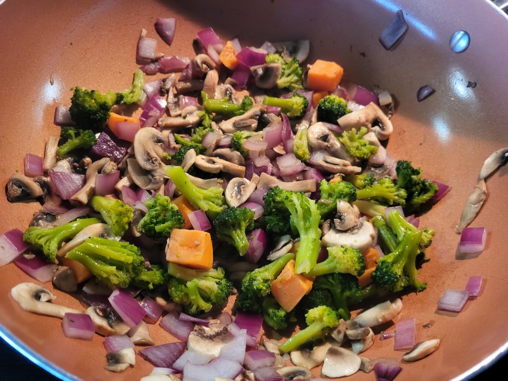 • Sauté vegetables in a Tablespoon of water and add any frozen vegetables to thaw