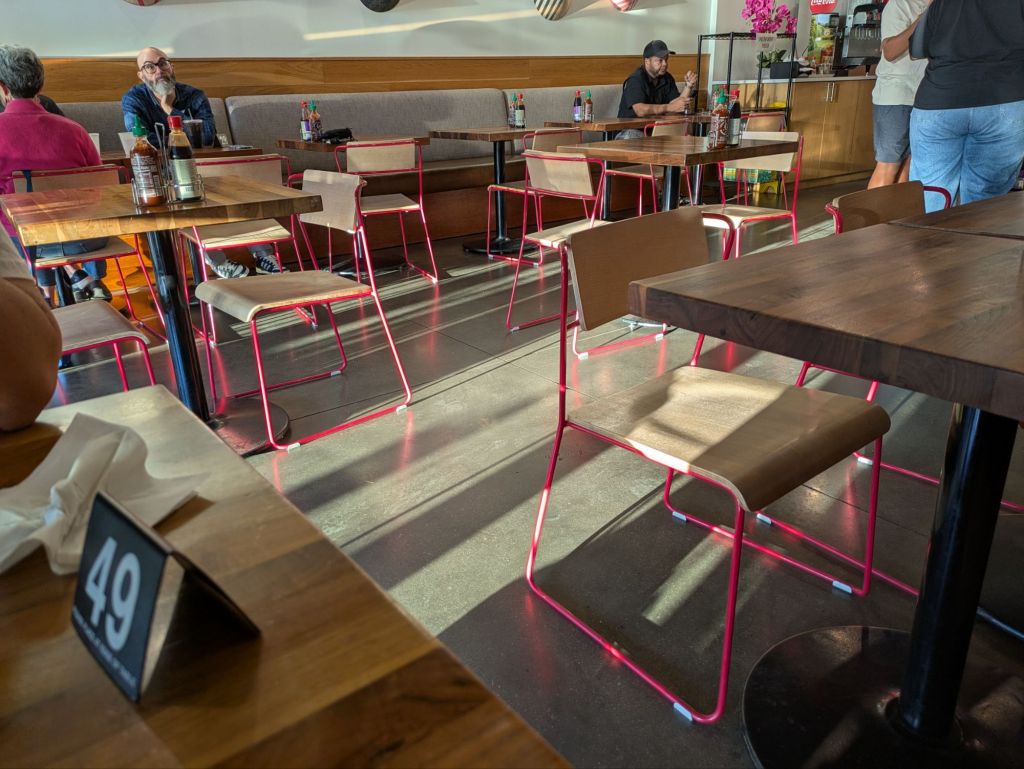 The restaurant is fast casual and roomy.