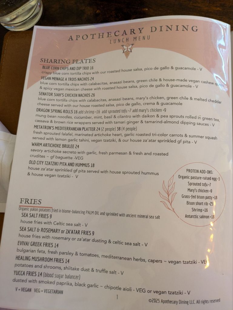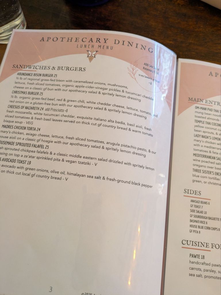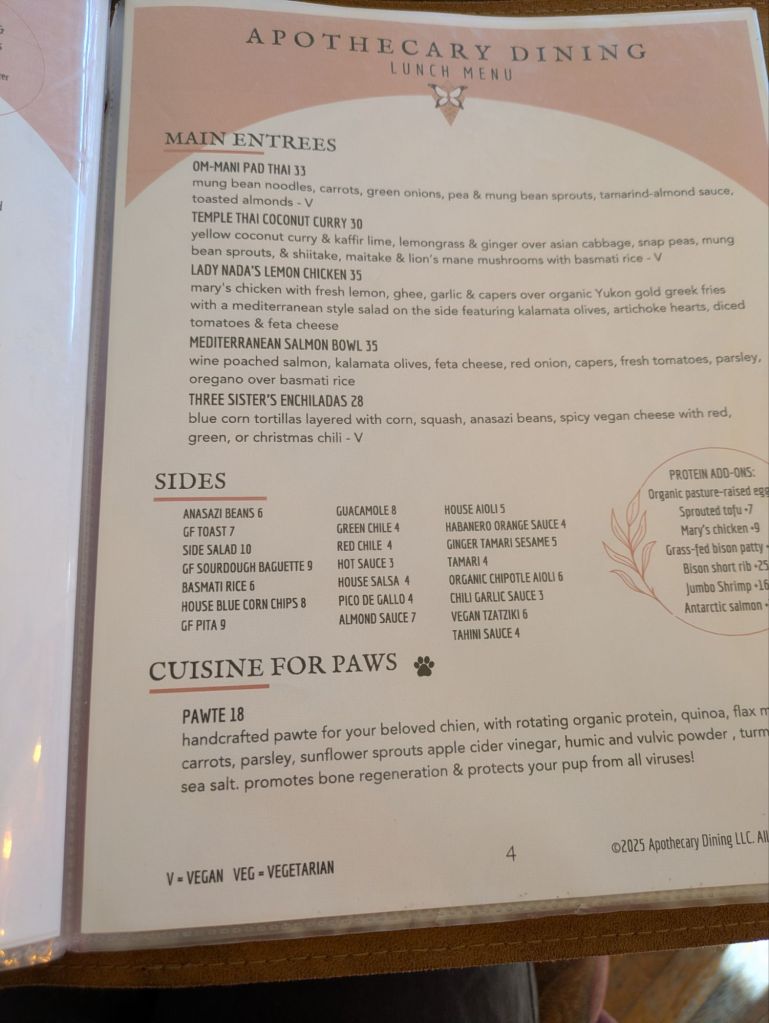 We were walking around downtown and suddenly very hungry. Yes, this happens often for us. A quick search revealed Apothecary Dining. I am always a bit anxious about places focused on the healing aspects of the meal. Sometimes it can lead to less flavorful food or even bitter experiences. This was not the case!