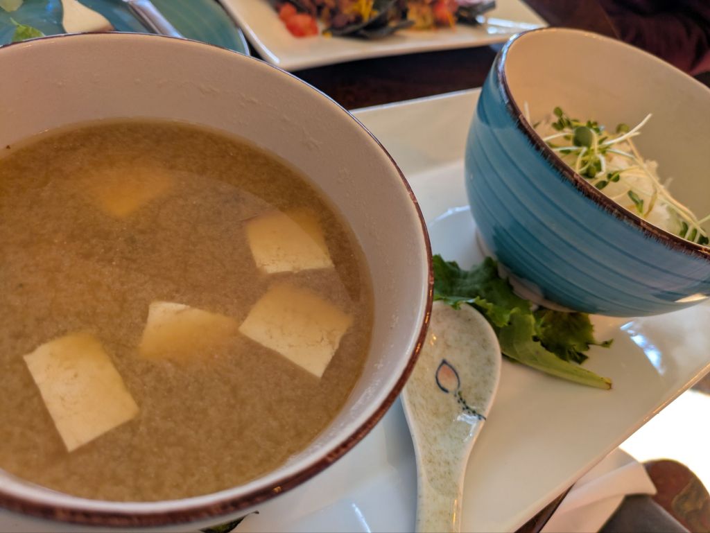 Luckily we both ordered smaller entrees! I picked the Miso soup and Hubby got a roasted vegetable salad.