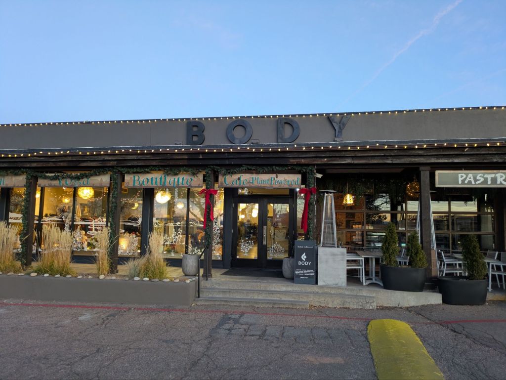 Body Cafe is located in a spa, yoga, and clothing store. It takes a small corner of all there is to do in this space.