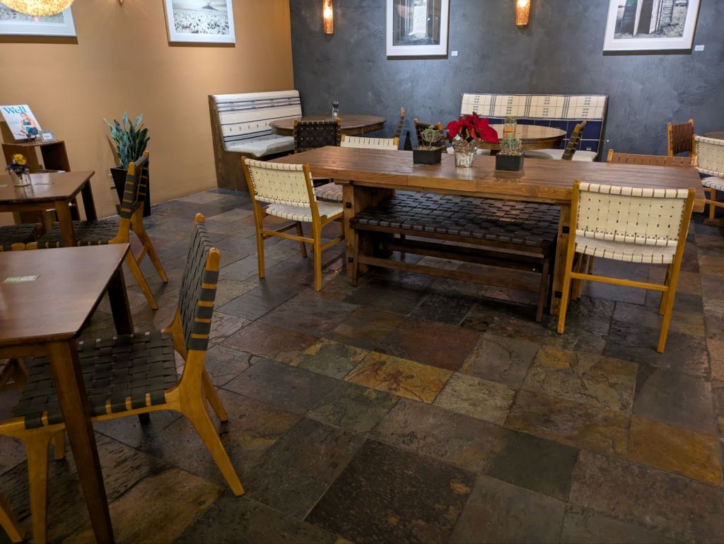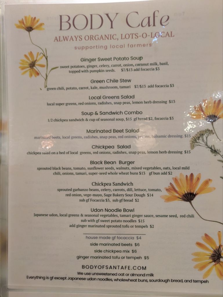 Dinnertime in Santa Fe, New Mexico led us to a cafe we have visited many times over the years. As soon as we pulled into the parking lot, I recognized this long time favorite. It has physically moved next door to the space I remember, but the owner said she really likes this space a lot more.