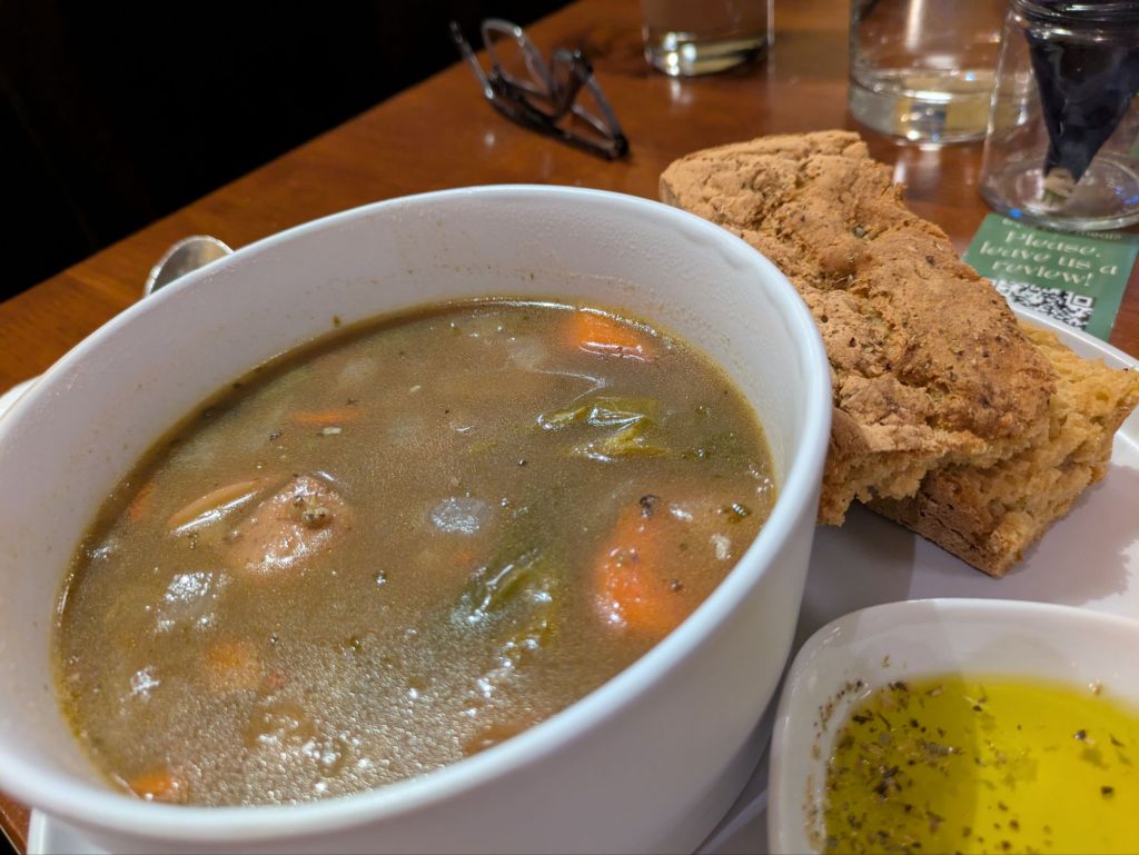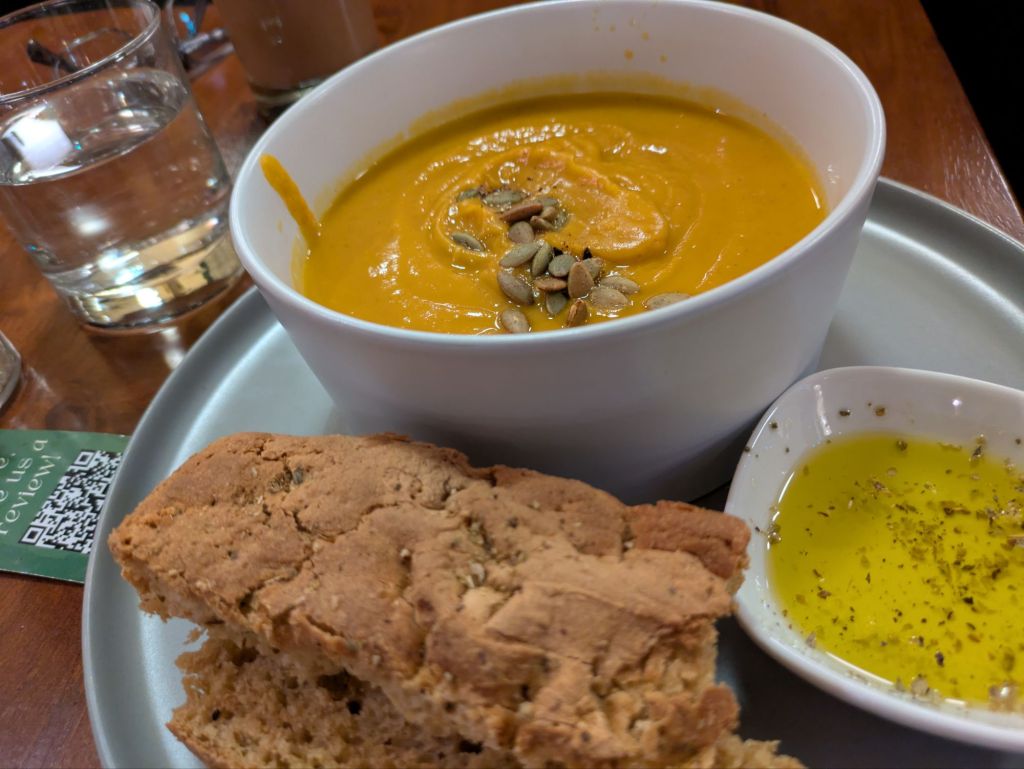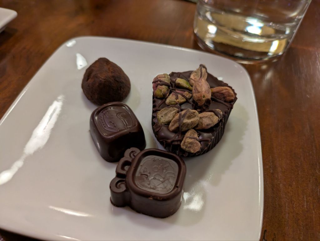 The soups hit the spot and the smoothie was delicious. The brownie was dry, but that can happen. The flavor was nice. We had to save the truffles for later, but they were super fun and yummy. I wish more places offered vegan dark chocolate truffles.